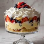 Celebrate the 4th of July with this festive and refreshing 4th of July Trifle, featuring layers of angel food cake, creamy white chocolate pudding, fresh strawberries, blueberries, and whipped topping. Perfect for summer gatherings, this trifle comes together quickly and offers a delightful balance of sweet, creamy, and fruity flavors.