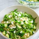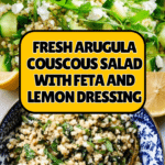 A fresh and vibrant Arugula Couscous Salad with creamy feta cheese, tender pearl couscous, crisp cucumber, and a zesty lemon vinaigrette. This quick and easy salad combines peppery arugula and bright flavors, making it a perfect light lunch or side dish.