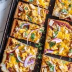 Keywords: BBQ Chicken French Bread Pizza, BBQ pizza, French bread pizza, easy dinner, quick pizza recipe, shredded chicken pizza