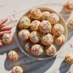 - Roll in additional sprinkles: For added decoration and texture, roll the protein balls in extra sprinkles if desired.