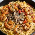 Keywords: Blackened Shrimp, Shrimp Stroganoff, Cajun Shrimp, Creamy Pasta, Fettuccini, Spicy Seafood, Mushroom Sauce, Roasted Red Peppers