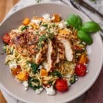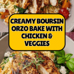This comforting Boursin Orzo Bake with Chicken and Veggies combines tender diced chicken, creamy Boursin cheese, and a medley of fresh vegetables baked to perfection. A flavorful, easy-to-make one-dish meal perfect for a wholesome weeknight dinner.