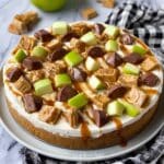 Keywords: caramel apple dessert, cookie pizza, caramel cream cheese spread, fall desserts, Twix dessert, cookie crust dessert