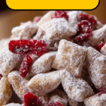 Cherry Cheesecake Puppy Chow is a delightful and easy-to-make snack that combines crunchy Chex cereal coated in a smooth, cherry-flavored white chocolate mixture and dusted with a sweet cheesecake pudding and powdered sugar blend. Enhanced with dried cherries, this treat offers a perfect balance of creamy, fruity, and crunchy textures, ideal for parties, movie nights, or anytime you crave a sweet and fun snack.