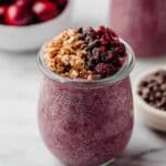 This Cherry Chia Pudding is a delicious and nutritious dairy-free breakfast or snack option made by blending frozen cherries with non-dairy milk, sweetened with maple syrup and flavored with almond extract. The mixture is combined with chia seeds, which thicken overnight into a creamy, pudding-like texture. It’s quick to prepare, vegan-friendly, and perfect for a healthy, make-ahead treat.