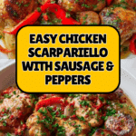 Chicken Scarpariello is a flavorful Italian-American dish featuring tender bone-in chicken thighs and spicy Italian sausage simmered together with pickled cherry peppers, garlic, and bell peppers in a tangy white wine and chicken stock sauce. This rustic skillet meal offers a perfect balance of savory, spicy, and tangy flavors, ideal for a hearty family dinner.