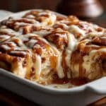 This Cinnamon Roll Bread Pudding is a cozy and comforting dessert that transforms classic cinnamon rolls into a rich, custardy treat. Soft chunks of cinnamon rolls soaked in a creamy mixture of milk, cream, eggs, and spices are baked until golden and topped with a luscious drizzle of icing, making it perfect for breakfast, brunch, or dessert.