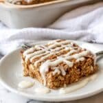 7. Cool and serve: Once baked, let the oatmeal cool for 10 minutes. Cut into squares, drizzle with the prepared icing, and serve warm for best flavor.