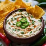 This creamy jalapeno dip is a flavorful and spicy appetizer perfect for parties and gatherings. Combining softened cream cheese, sour cream, shredded cheddar, and both fresh and pickled jalapenos, it offers a rich, zesty, and smooth texture with a delicious kick. Garnished with fresh cilantro and served with tortilla chips or vegetable sticks, it’s a crowd-pleaser that’s quick to prepare and perfect for any occasion.