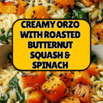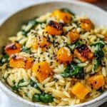 Keywords: orzo recipe, roasted butternut squash, creamy pasta, spinach pasta, vegetarian main dish, easy dinner, Mediterranean cuisine