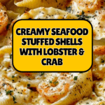 Keywords: Seafood stuffed shells, lobster and crab pasta, creamy seafood pasta, baked stuffed shells, Parmesan cream sauce, comfort food, seafood pasta bake
