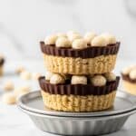 Store the almond butter cups in an airtight container in the refrigerator for up to one week or in the freezer for up to one month. Allow frozen cups to thaw in the fridge before serving. Avoid leaving them at room temperature for long, as they will soften and lose their crisp texture.