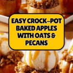 This comforting Crock-Pot Baked Apples recipe features tender apples stuffed with a buttery, spiced oat and pecan filling. Slow-cooked to perfection, these baked apples are an easy and cozy dessert option, especially when served warm with ice cream and drizzled caramel sauce.