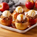 This comforting Crock-Pot Baked Apples recipe features tender apples stuffed with a buttery, spiced oat and pecan filling. Slow-cooked to perfection, these baked apples are an easy and cozy dessert option, especially when served warm with ice cream and drizzled caramel sauce.