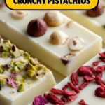 This easy homemade vegan white chocolate recipe combines creamy cacao butter, coconut butter, and cashew butter with natural vanilla and powdered sugar to create a luscious, plant-based treat. Enhanced with optional toppings like pistachios or freeze-dried raspberries, this recipe is perfect for anyone looking to enjoy dairy-free white chocolate that’s simple, delicious, and delightful to make at home.