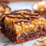 Delight in these Easy Samoa Brownies, a rich and gooey treat inspired by the beloved Samoa cookies. Featuring a fudgy brownie base topped with toasted coconut mixed with luscious caramel sauce, and finished with a decorative drizzle of melted semi-sweet chocolate, these brownies offer an irresistible blend of textures and flavors perfect for any dessert lover.