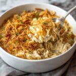 French Onion Orzo Bake captures the comforting, rich flavors of classic French onion soup elevated into a creamy, cheesy pasta casserole. Slowly caramelized onions combine with garlic, thyme, and orzo pasta simmered in savory beef broth and heavy cream. Finished with melted Gruyère, mozzarella, and Parmesan cheeses, then baked until bubbly and golden, this dish makes a heartwarming, crowd-pleasing meal perfect for cozy nights.