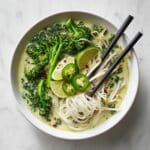 Store leftover broth in an airtight container in the refrigerator for up to 4 days. You can also freeze it in portions for up to 3 months. When reheating, heat gently on the stove until hot, then add any fresh ingredients if desired.