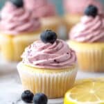 These gluten free lemon cupcakes with blueberry frosting are bright, tangy, and perfectly moist. They combine fresh lemon zest and juice with a sweet blueberry frosting for a refreshing treat that’s great for any occasion.
