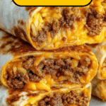 This Grilled Cheese Burrito combines the flavors of seasoned ground beef, creamy nacho cheese, chipotle sauce, sour cream, and melted cheddar and mozzarella cheeses all wrapped in a soft flour tortilla and grilled to crispy, cheesy perfection. It’s a hearty, indulgent meal perfect for lunch or dinner.