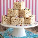 Keywords: Honey Nut Cheerio Treats, no-bake treats, marshmallow cereal bars, gluten free snacks, easy kids snacks, sweet cereal bars