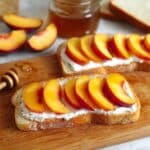Sourdough is ideal because it crisps well and holds up to the juicy peaches, but challah, multigrain, or thick white bread also work nicely depending on your preference.