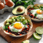 Huevos Rancheros Tortilla Bowls are a vibrant and satisfying Mexican-inspired breakfast. Crispy tortilla bowls filled with a flavorful tomato and black bean mixture, topped with perfectly cooked eggs, fresh avocado, and cheese make for a delicious start to your day.