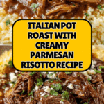 This Italian Pot Roast with Parmesan Risotto is a comforting and flavorful dish featuring tender, slow-cooked beef chuck roast in a rich tomato and herb sauce, paired perfectly with creamy, cheesy Parmesan risotto. The pot roast is seared, then oven-braised with vegetables and red wine to develop deep flavors, while the risotto is cooked stovetop to creamy perfection with shallots, white wine, and Parmesan cheese.