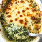 Store leftovers in an airtight container in the refrigerator for up to 3 days. Reheat gently in the microwave or oven until warmed through. This casserole doesn’t freeze well because of the fresh spinach’s texture changes when thawed.