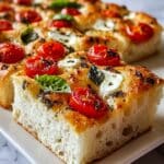 Margherita Focaccia Bread is a delightful twist on a classic Italian favorite, combining fragrant basil, fresh mozzarella, and juicy cherry tomatoes on a soft, olive oil–rich focaccia base. This simple yet flavorful bread is perfect as a snack or a light meal.