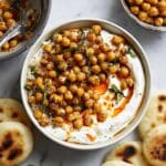 - Garnish: Sprinkle freshly chopped cilantro and crushed red pepper flakes over the chickpeas to add color and a touch of heat.