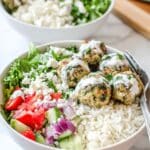 Mediterranean Turkey Meatball Bowls with Lemon Rice and Fresh Veggies Recipe