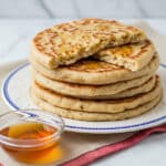 7. Keep flatbreads soft: As you finish cooking each flatbread, stack them on top of each other and cover with a kitchen towel to keep them warm and soft until serving.