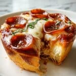 These Mini Deep Dish Crescent Roll Pizzas are a quick and easy appetizer or snack featuring flaky crescent roll dough baked in a muffin tin with marinara sauce, melted mozzarella cheese, and pepperoni topping. Perfect for parties or a fun meal, they combine the convenience of crescent dough with the classic flavors of a deep dish pizza in bite-sized portions.