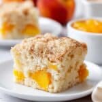 • You can substitute fresh peaches with frozen diced peaches, just be sure to thaw and drain them well before using.