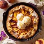 - Bake: Place the skillet in the preheated oven and bake for 30-35 minutes, or until the puff pastry crust is golden brown and the peaches are bubbly and tender.