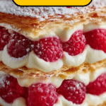 These Raspberry Mille-Feuille Cookies are delicate, flaky pastries layered with sweet and tangy raspberry jam, finished with a dusting of powdered sugar. Perfect for an elegant dessert or a special tea-time treat, they combine the classic French mille-feuille technique in a bite-sized cookie form.