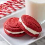 Keywords: Red Velvet Cookies, Sandwich Cookies, Cream Cheese Frosting, Red Velvet Dessert, Homemade Cookies, Holiday Cookies