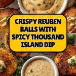 Delicious and crispy Reuben Balls packed with flavorful corned beef, sauerkraut, and melted Swiss cheese, served with a spicy Thousand Island dipping sauce. Perfect as an appetizer or party snack, these bite-sized treats combine classic Reuben sandwich flavors into a fun, fried ball.
