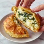 - Serve: Remove from air fryer and let cool slightly. Slice and enjoy your crispy, flavorful Rice Paper Spanakopita!