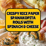 Keywords: Rice Paper Spanakopita, Greek appetizer, spinach cheese roll, air fryer recipe, healthy spanakopita, vegetarian snack, Lebanese rice paper recipe