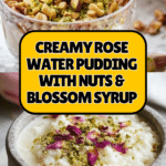 Keywords: rose water pudding, Middle Eastern dessert, milk pudding, floral dessert, rose water syrup, nutty pudding, orange blossom water pudding