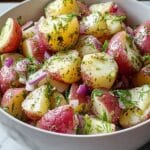 A tangy and refreshing Salt and Vinegar Potato Salad featuring tender red potatoes tossed in a sharp white vinegar dressing, enhanced with fresh dill, red onion, and chives. This salad is perfect for picnics or as a flavorful side dish that pairs beautifully with grilled or roasted meals.