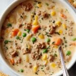 Keywords: Shepherd’s Pie Soup, creamy shepherd’s pie, ground beef soup, comfort food soup, cheesy potato soup