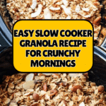 Keywords: slow cooker granola, homemade granola, easy granola recipe, slow cooker breakfast, toasted oats, healthy snack