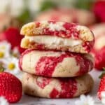 Delight in these Strawberry Cheesecake Cookies featuring creamy cheesecake centers and swirls of homemade strawberry jam, all wrapped in tender, buttery cookie dough. Perfect for a sweet treat that combines classic cheesecake flavors with fresh strawberries in a handheld cookie form.