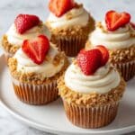 Delightful Strawberry Cream Cheese Muffins featuring a moist, tender crumb with a luscious cream cheese center, fresh diced strawberries, and a sweet crumb topping. These muffins are perfect for breakfast or a sweet snack, baked to golden perfection with a balance of creamy, fruity, and crunchy textures.