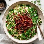A flavorful and festive side dish featuring tender peas sautéed with savory pancetta, sweet pears, bright lemon, and fresh parsley. This Thanksgiving peas recipe combines a balance of savory, sweet, and tangy elements, elevated with Dijon mustard and crisp shallots for a perfect holiday accompaniment.