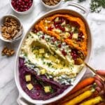 This vibrant and creamy whipped sweet potatoes recipe combines three varieties of sweet potatoes—orange, white, and purple—for a colorful and flavorful side dish. Each type is cooked until tender, then whipped with vegan butter and unsweetened nondairy milk to create a silky smooth texture. Finished with your choice of fresh toppings, this dairy-free, vegan-friendly dish is perfect for holiday dinners or any comforting meal.